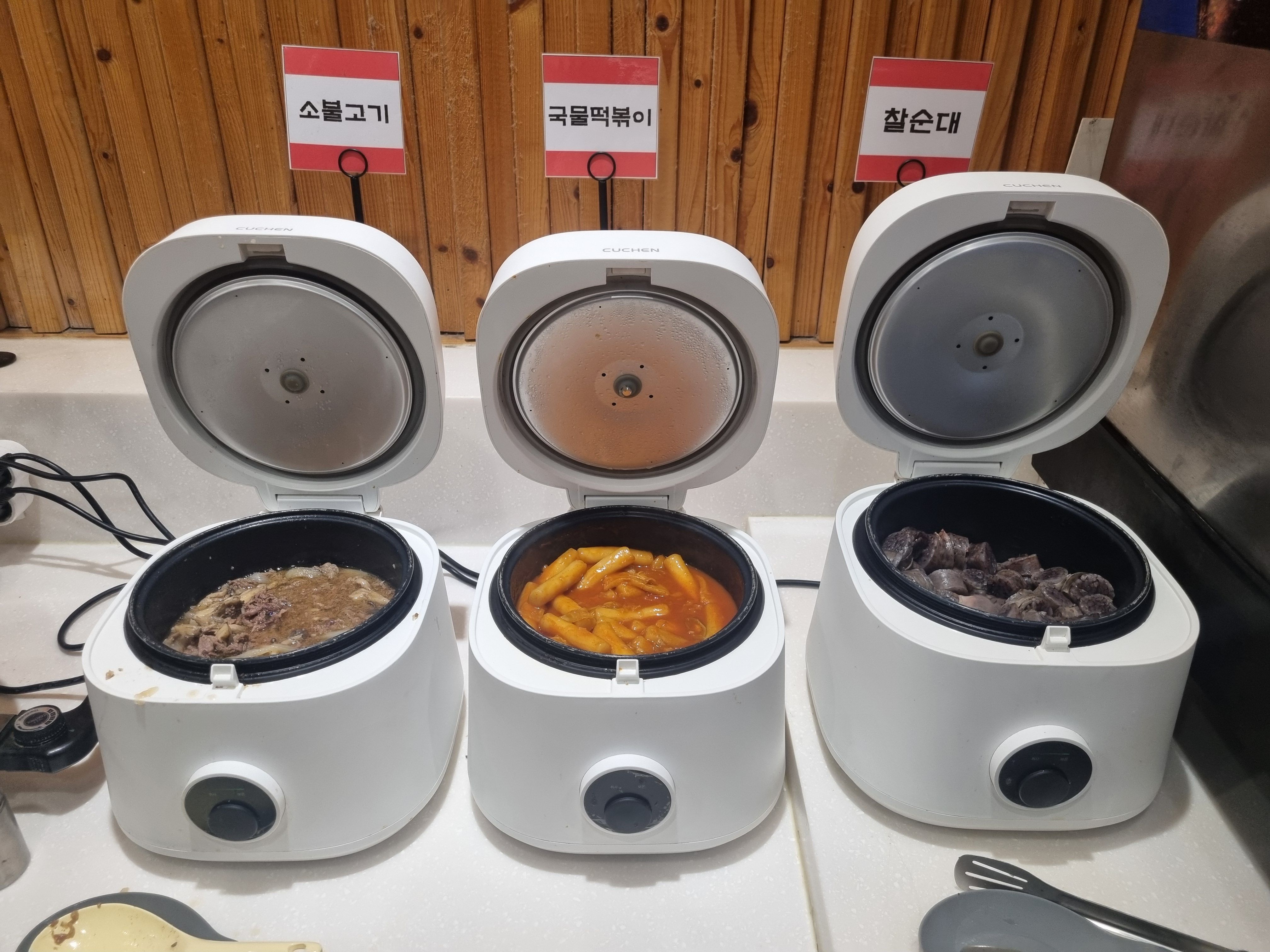 사리 종류도 다양했어요. 칼국수 면은 기본이고, 떡, 만두, 어묵, 라면 사리까지 있어서 “오늘은 뭘로 마무리하지?” 고민하는 재미가 있었어요. 무작정 많이 가져오는 것보다, 한 번에 조금씩 담아와서 조합을 바꿔가며 먹는 게 제일 좋았어요.