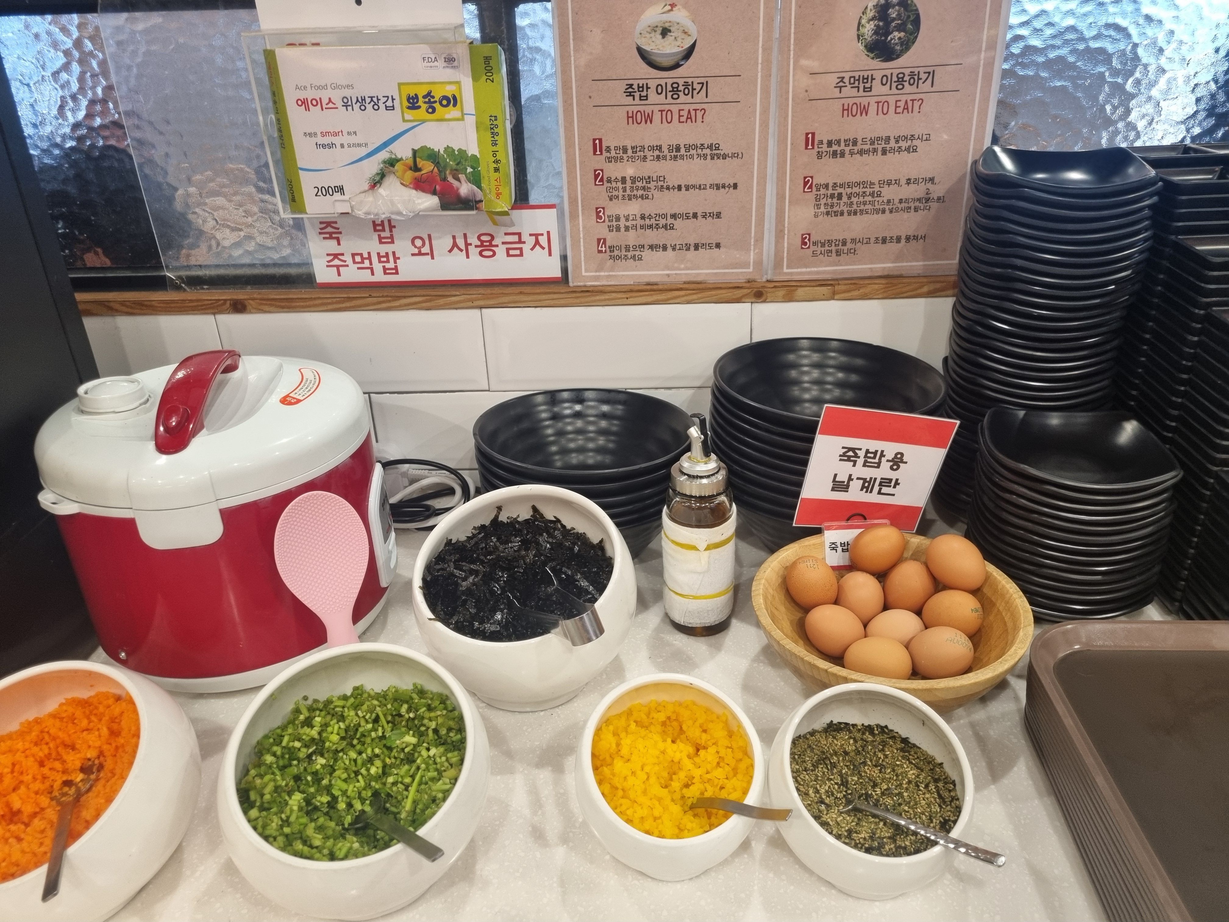 그리고 마지막은 역시 죽. 밥, 계란, 김가루까지 준비되어 있어서 직접 만들어 먹을 수 있는데, 이게 또 별미예요. 배부르다면서도 숟가락은 계속 가는 그 상태… 아시는 분들은 아실 거예요. 샤브샤브의 진짜 엔딩은 죽이라는 말, 여기서 다시 한번 실감했어요.
