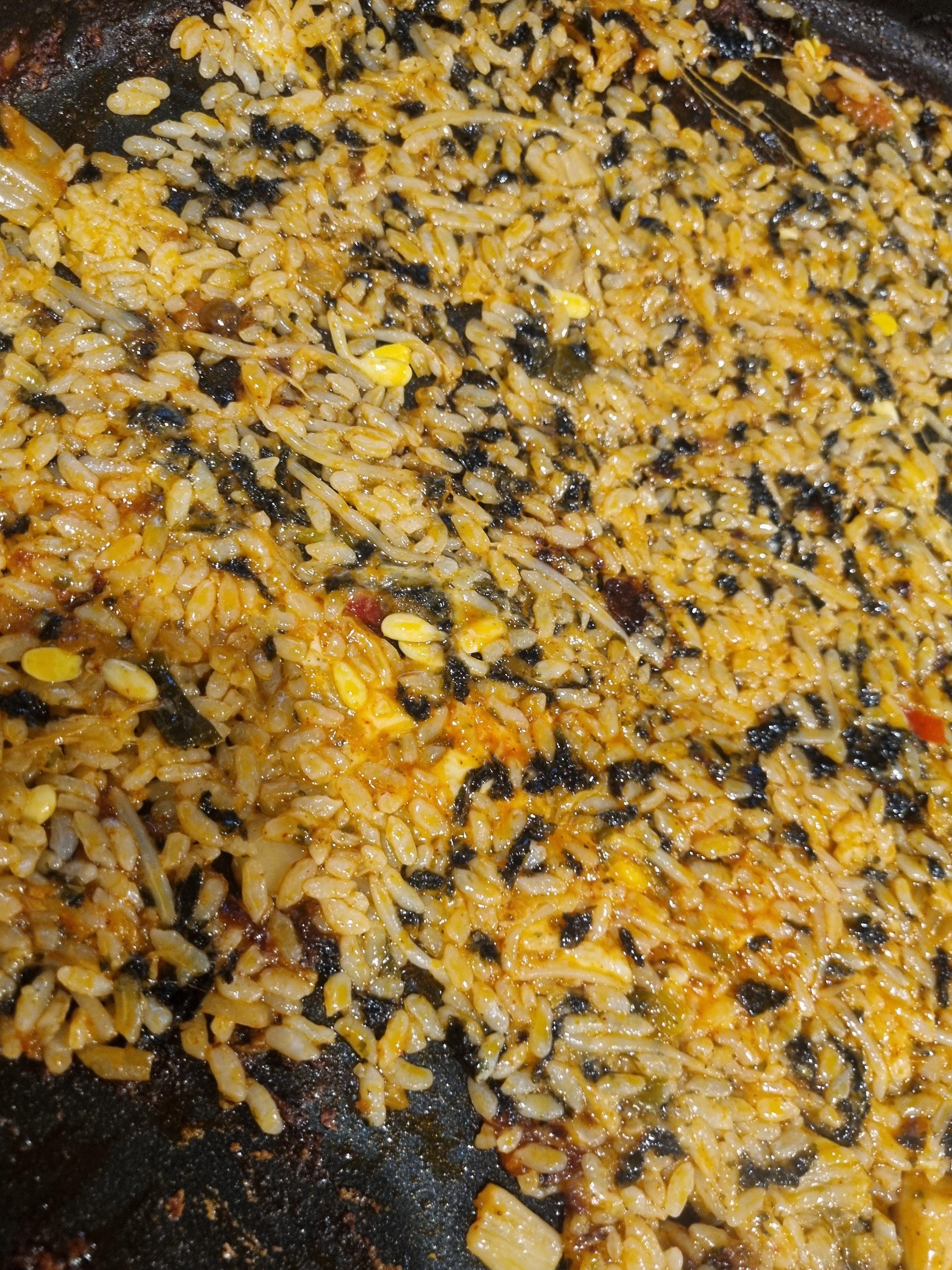 철판에 눌어붙는 그 고소한 누룽지까지 긁어 먹으면