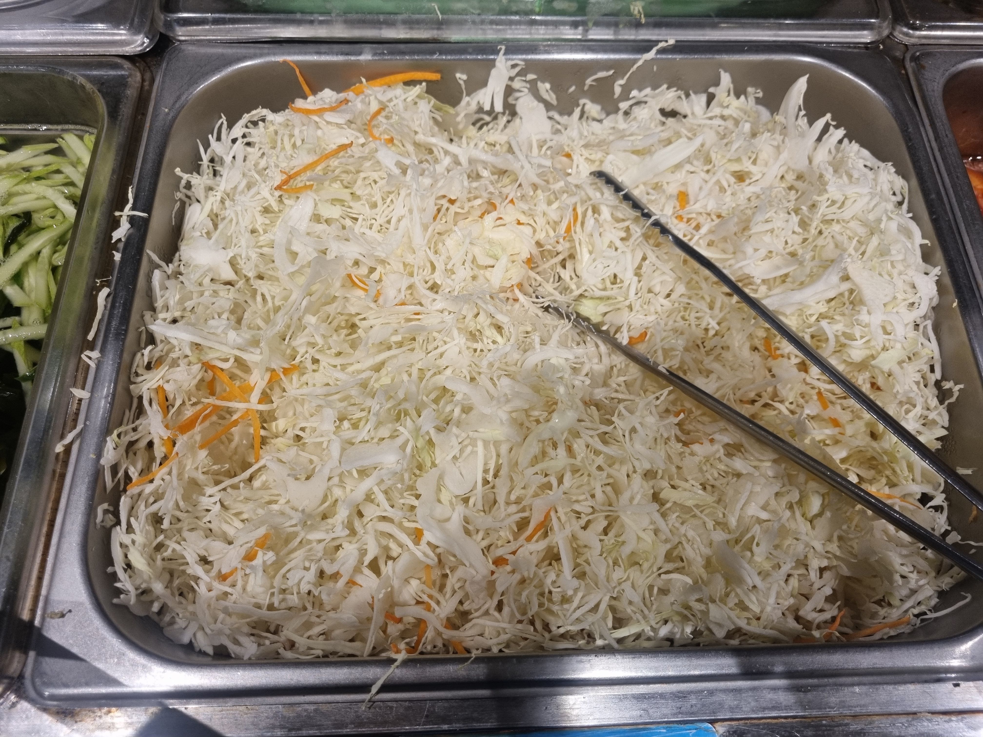 샐러드는 양배추가 아주 가늘게 썰려 있어서 소스와 잘 버무려지는데,