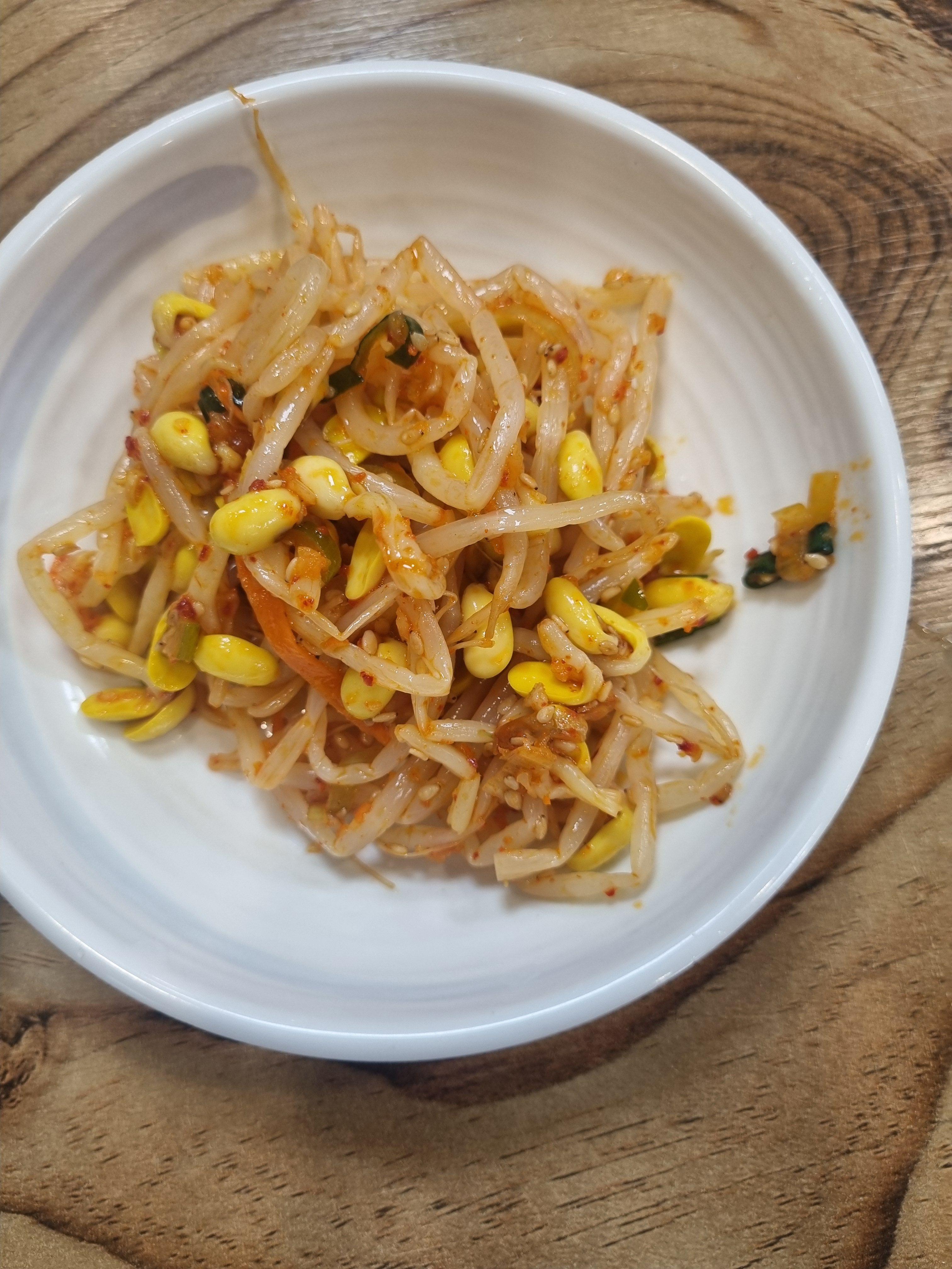- 콩나물무침은 고춧가루랑 참기름 비율이 딱 좋아서 밥 비벼 먹고 싶어지는 맛,