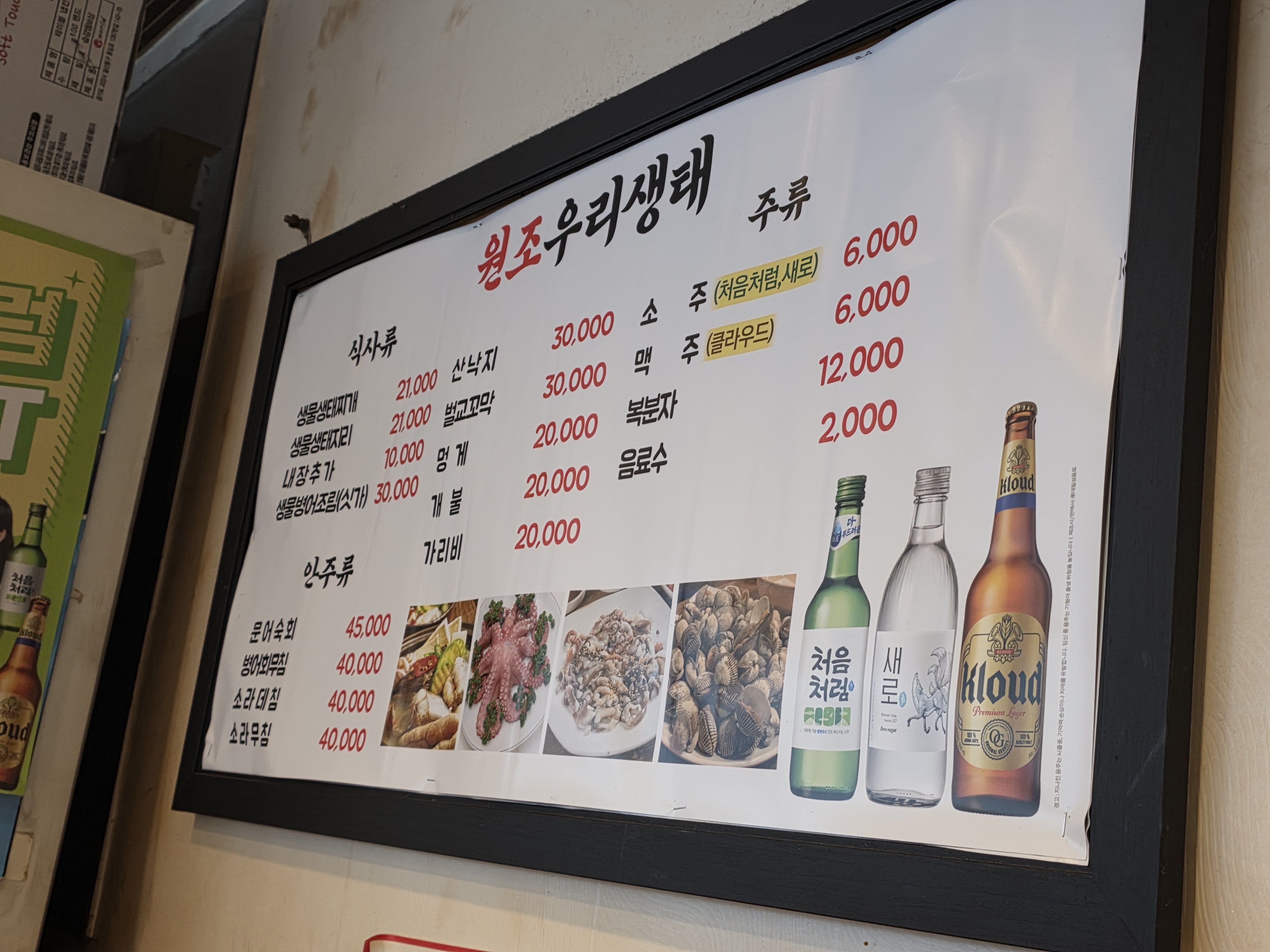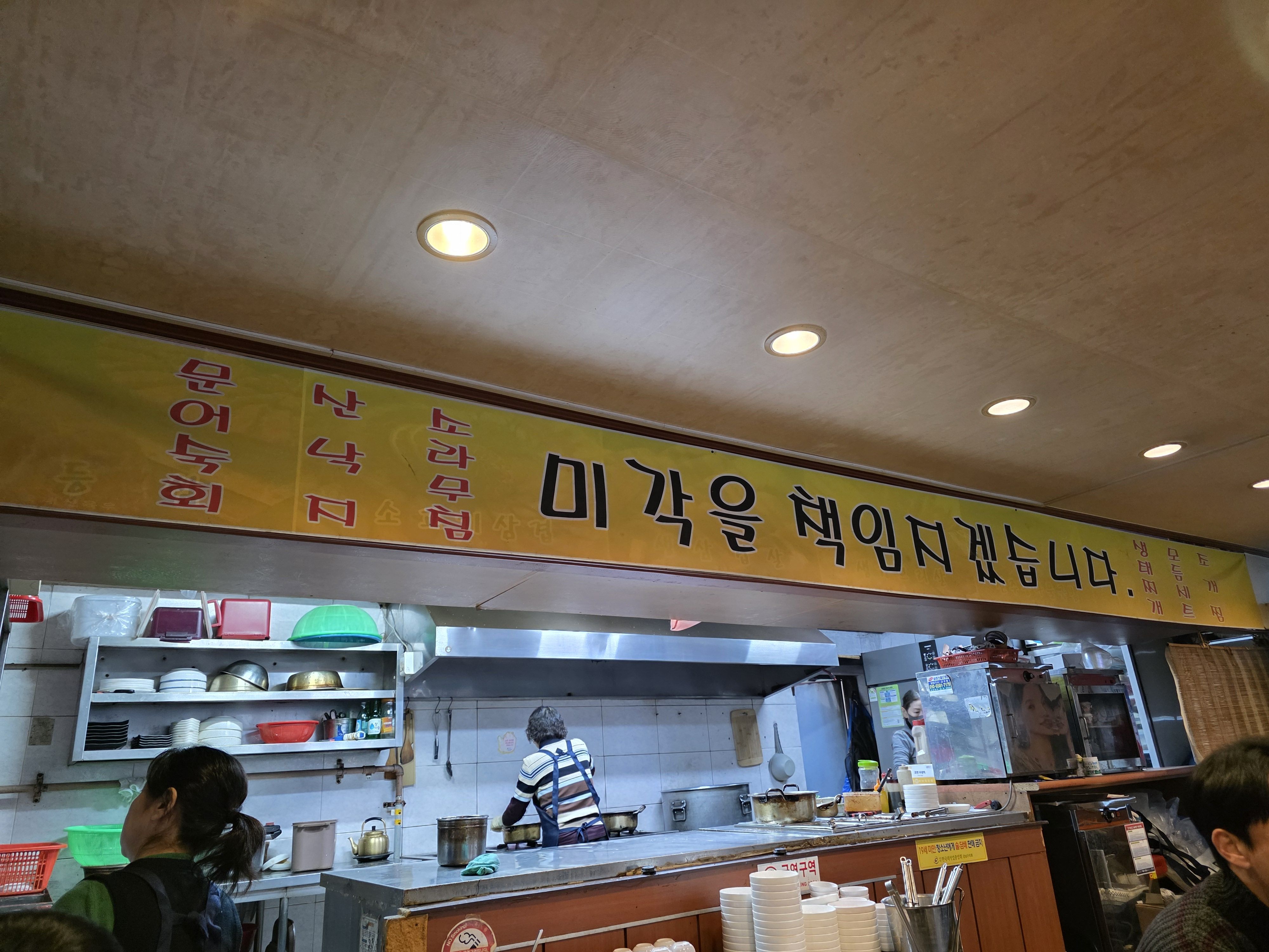 오래된 맛집 특유의 진득한 양념 향이 훅 들어오는데, 이게 또 사람을 기대하게 만드는 향이잖아요. 메뉴판도 벽에 딱 걸려 있고 화려한 건 하나 없는데 “우리는 맛으로 승부합니다” 분위기라 너무 좋았어요.