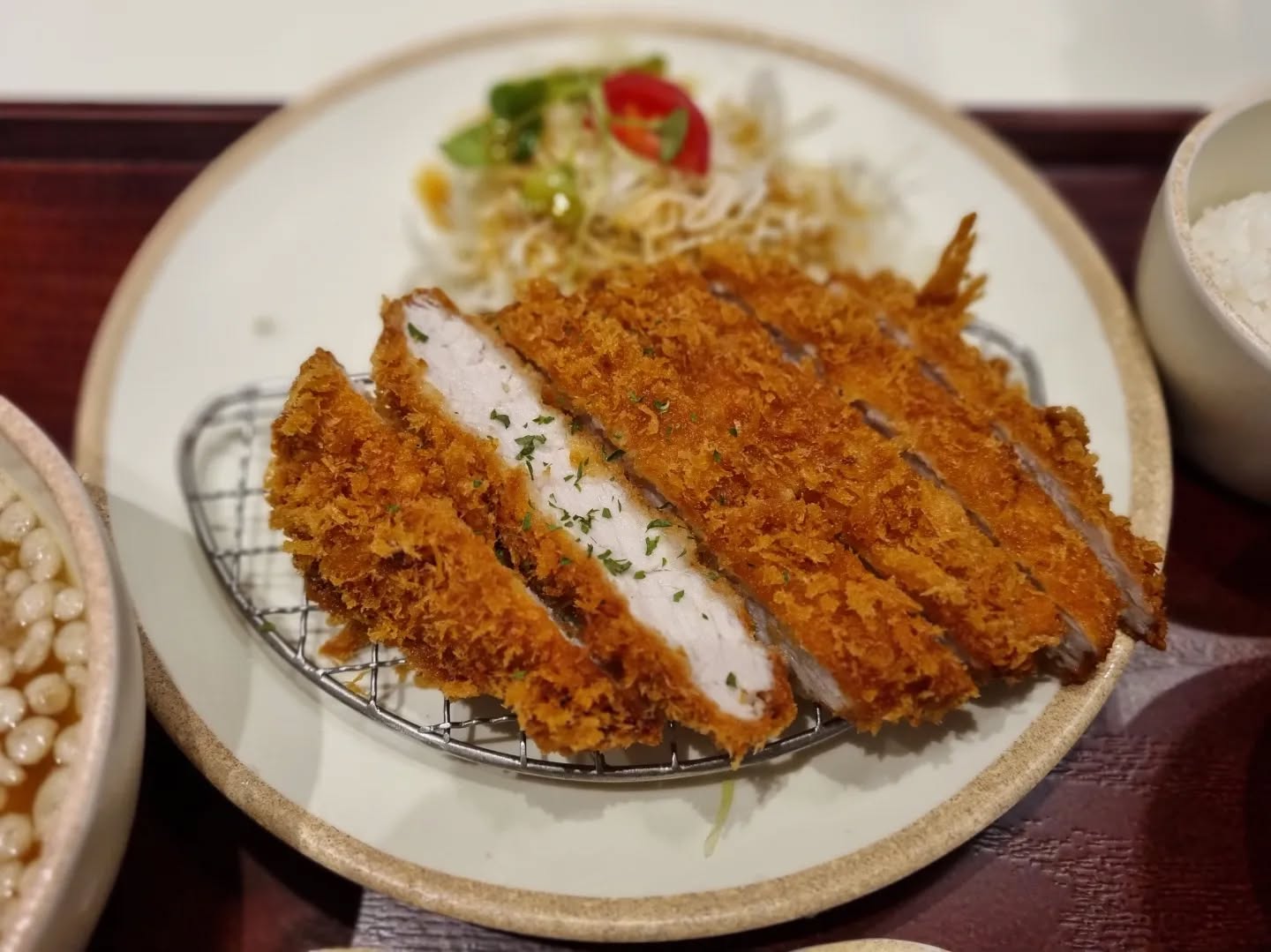 그리고 함께 나온 샐러드는 아삭아삭하고 신선해서 돈카츠의 바삭함과 잘 어울렸어요. 드레싱도 과하지 않고 산뜻해서 고기 사이사이에 먹어주면 입안이 개운해지더라고요. 밥은 고슬고슬하게 잘 지어져서 돈카츠와 한입 먹으면 입안에서 딱 맞는 궁합이었어요.