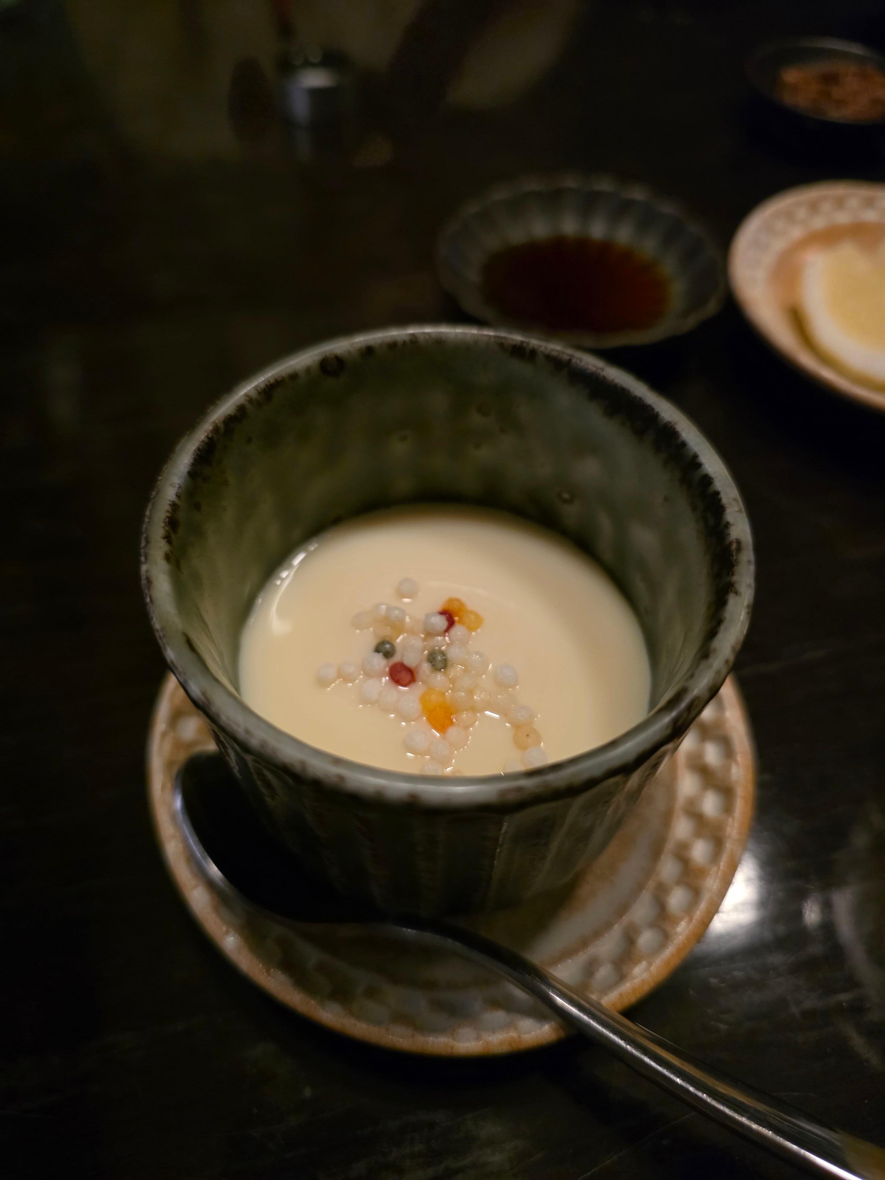 마지막 디저트로 나온 콩가루 모찌는 달콤하면서도 고소한 맛이 균형을 이루어 완벽한 마무리를 해줬어요. 쫀득한 식감 덕분에 일본 여행 왔을 때 먹었던 디저트가 떠오르더라구요.