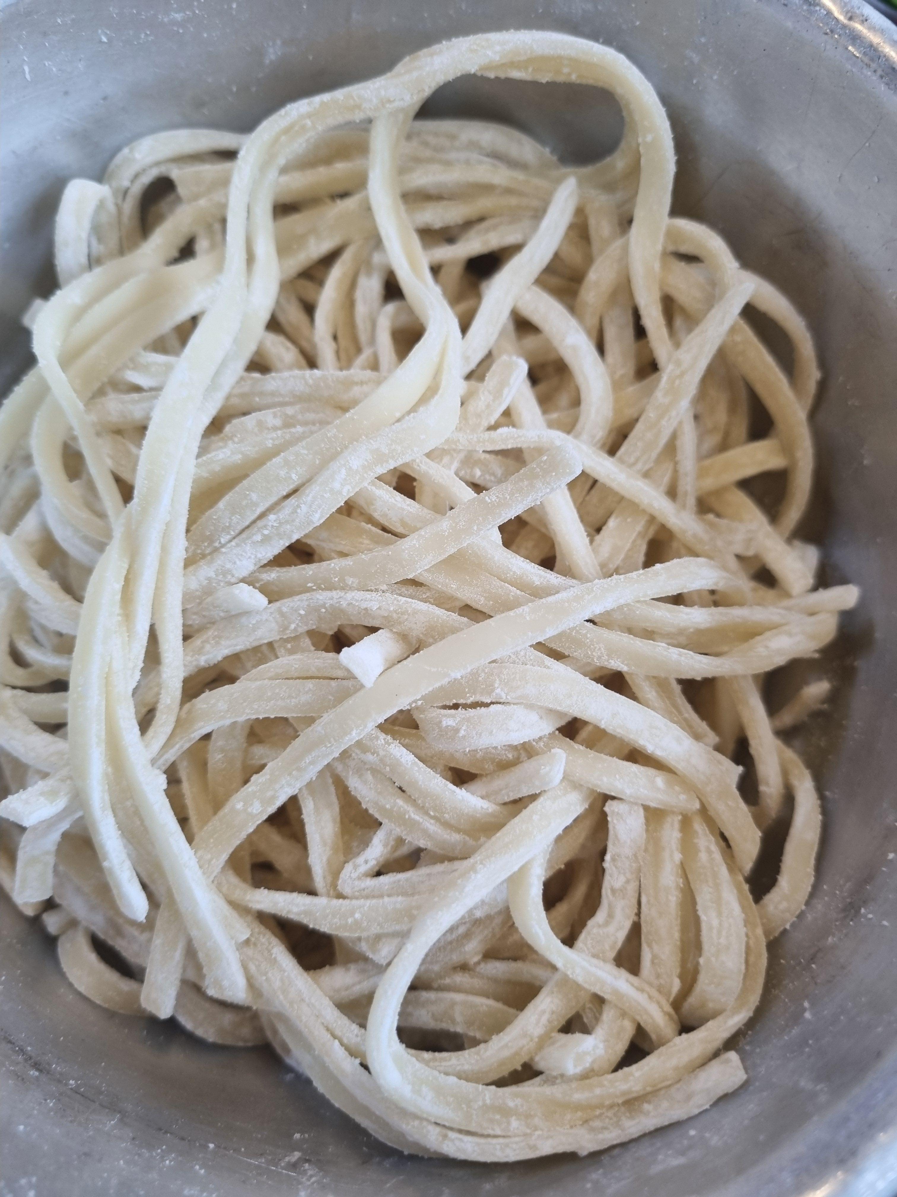 닭고기 어느 정도 건져먹고 나면, 칼국수 사리 투입!