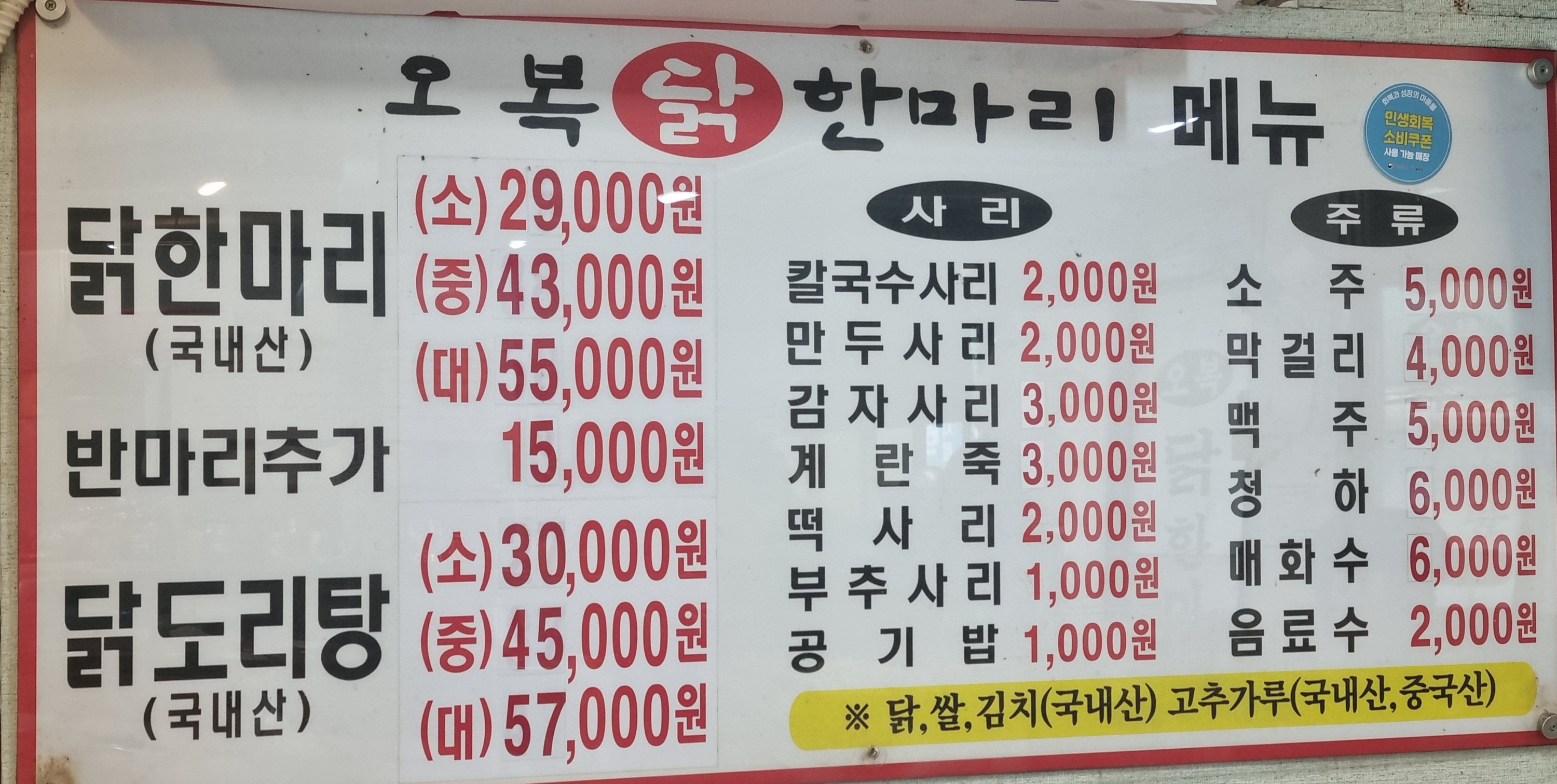 닭은 전부 국내산이고, 도리탕 옵션도 있지만 국물이 맑은 닭한마리로 고고💨
