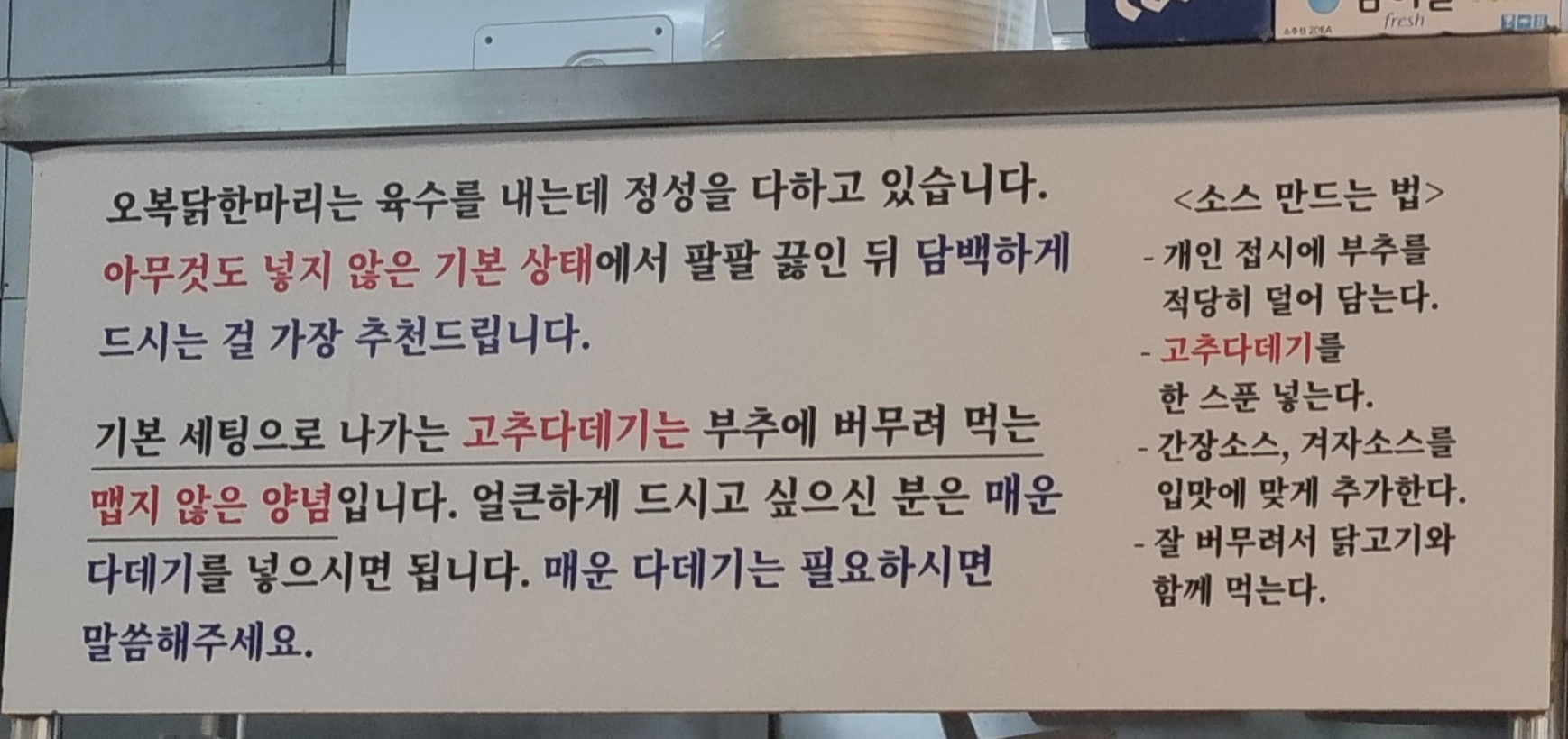 안내문도 친절하게 써 있어서 처음 오는 손님도 어렵지 않게 먹을 수 있구요.