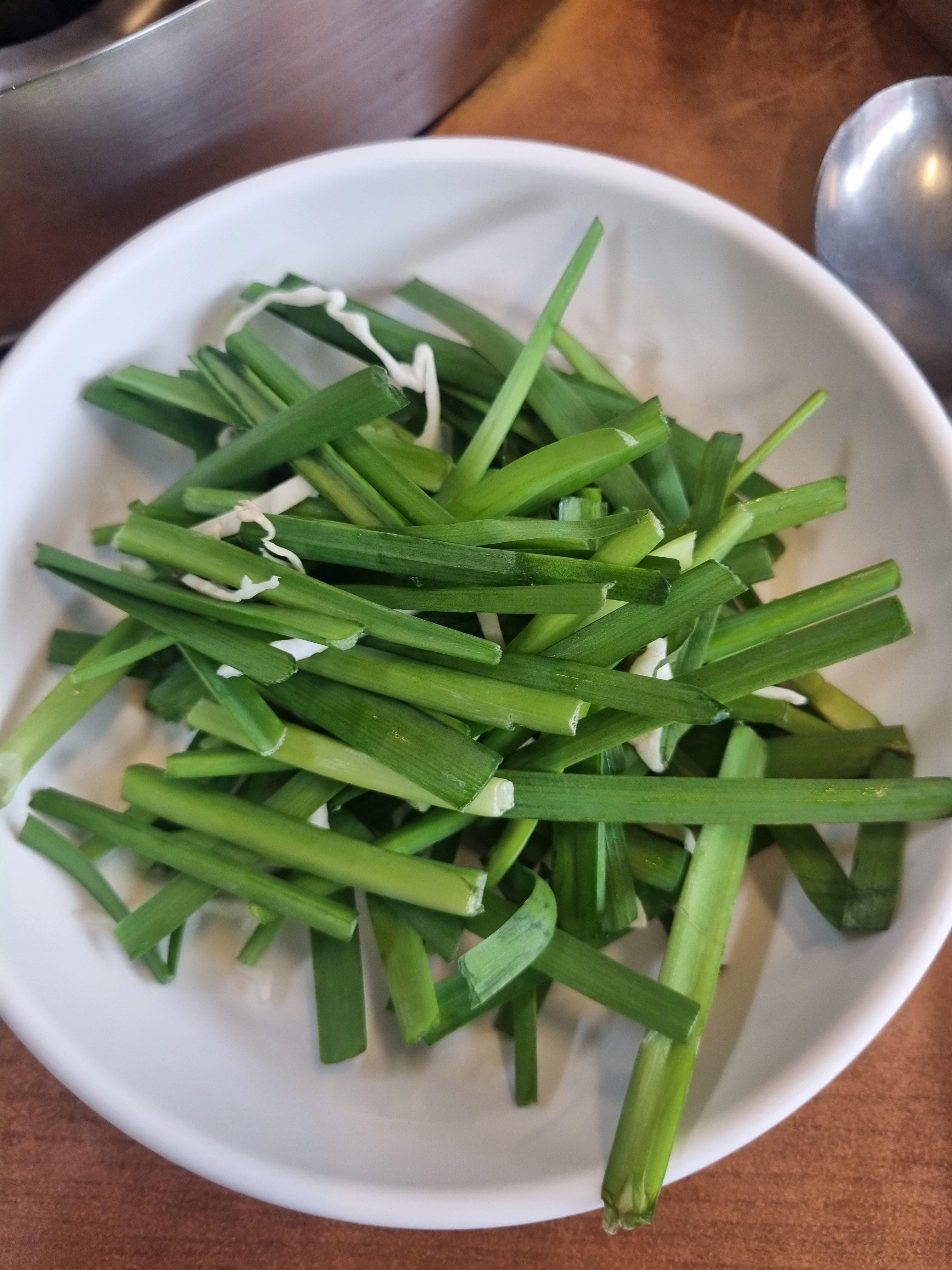 부추랑 같이 먹으면 쫄깃한 면 + 아삭한 채소 식감이 입안에서 환상적으로 어우러져요.
