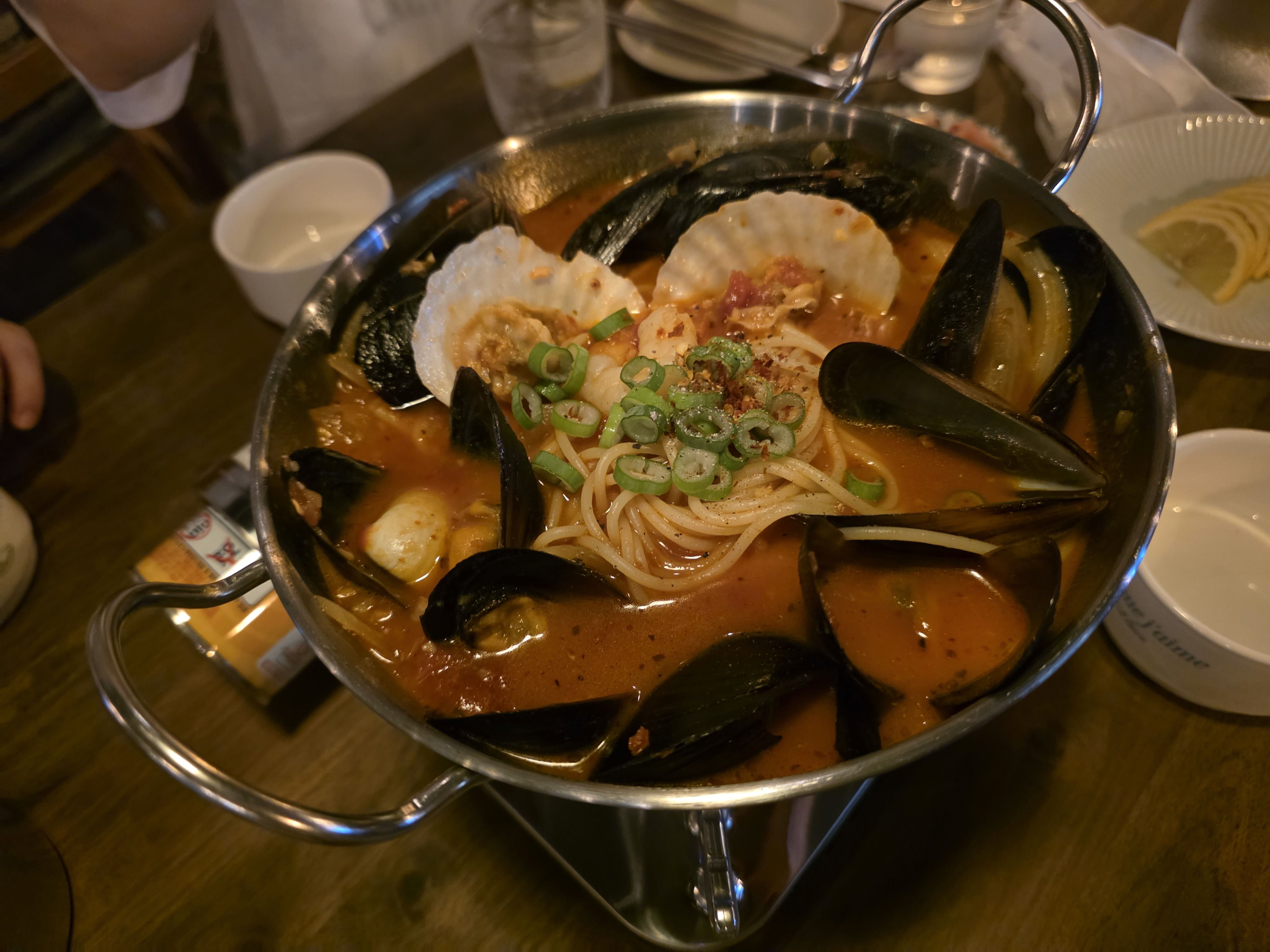홍합은 살이 통통하고, 새우는 적당히 익어서 탱글탱글, 오징어는 부드러우면서도 쫄깃했어요.