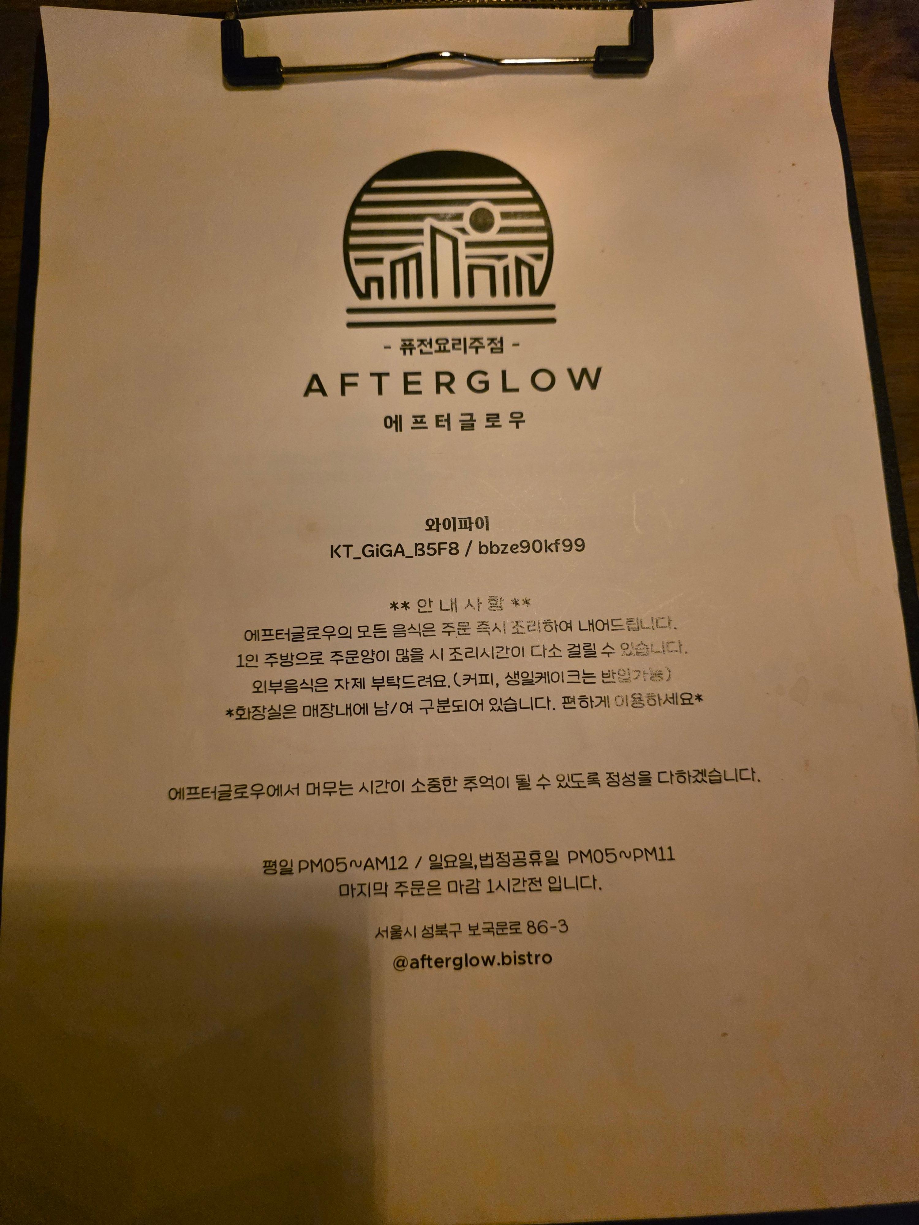 정릉 감성 맛집, 오늘은 에프터글로우에서 한 잔