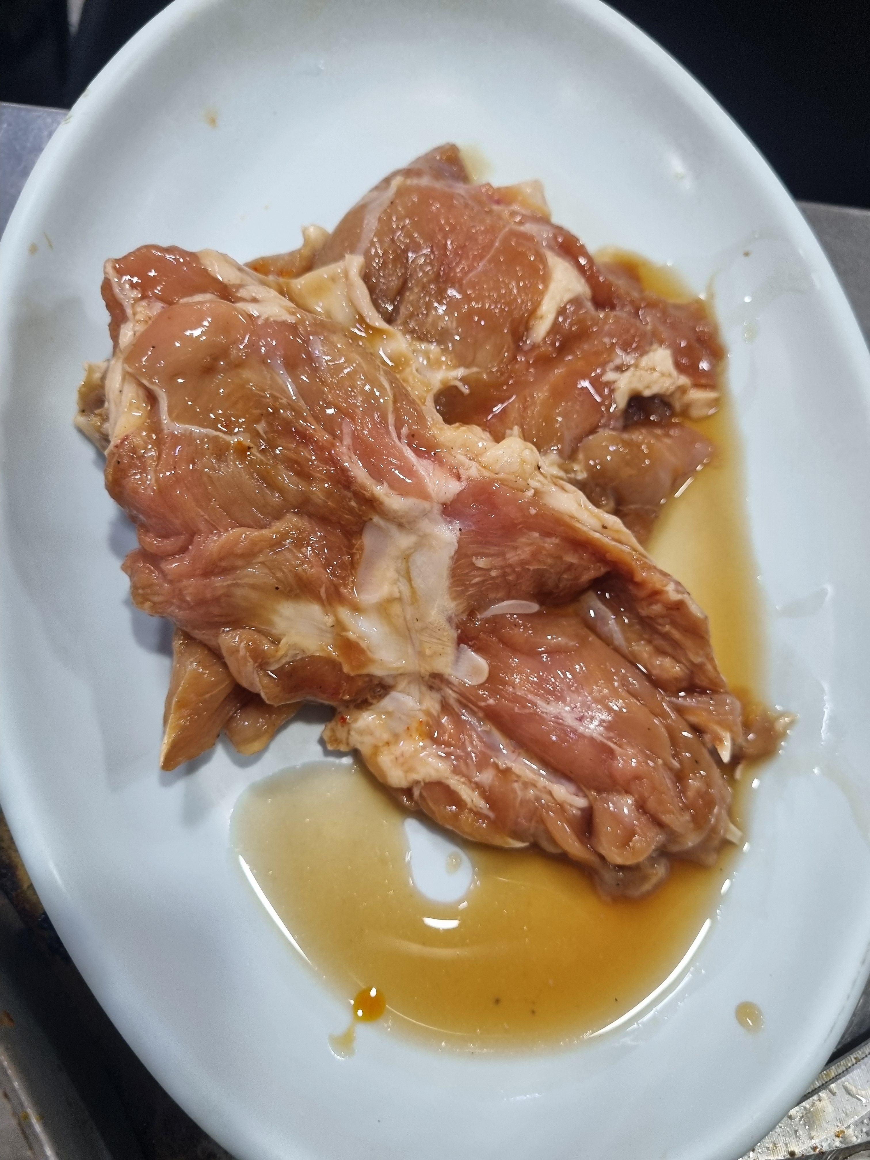 소금과 양념을 맛본 후, 마지막으로 추가 주문한 건 간장 닭갈비였습니다. 사실 큰 기대 없이 주문했는데, 이날의 히트 메뉴였어요.