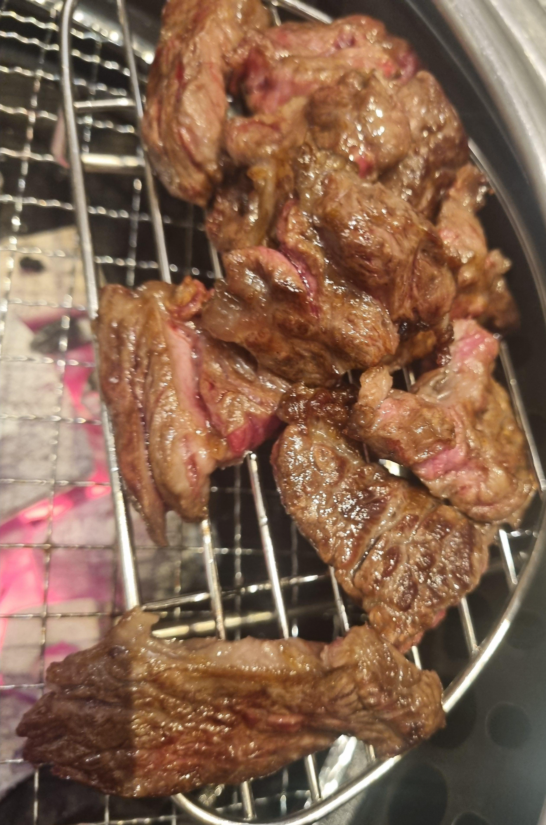 같이 나온 애호박과 새송이버섯은 고기 기름에 구워서 먹으면 훨씬 맛있어요. 고기 굽는 동안 직원분이 타지 않게 잘 관리해주셔서 적당히 익었을 때 바로 먹을 수 있었어요.